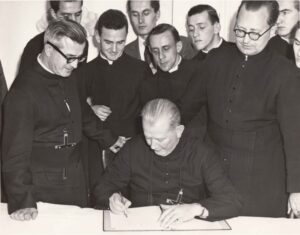 In response to his Superior general’s request,Father Parenthas the inspiration to call the new groupVoluntas Dei. He met a few young men interested in the project and prepared the foundation of the Institute.
