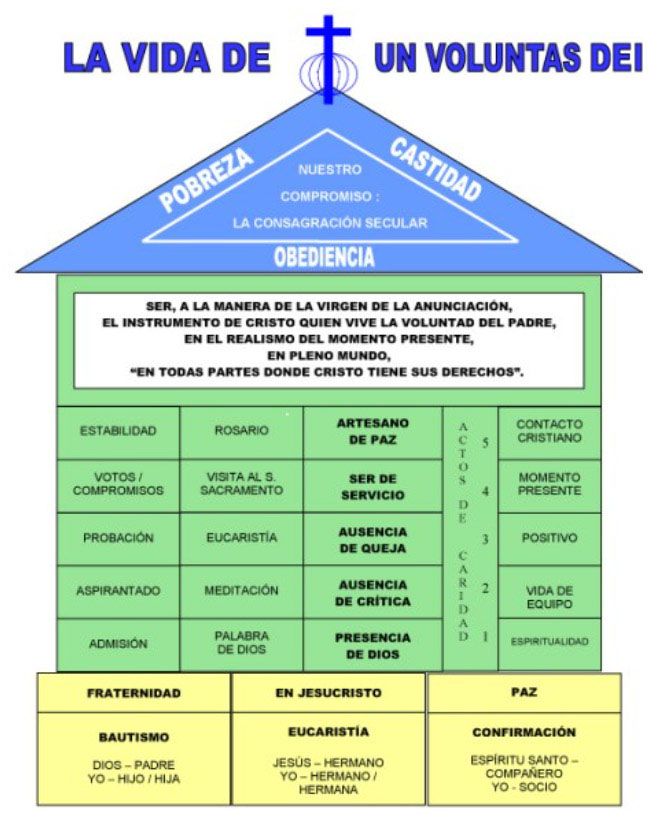 Al ideal de vida que el Instituto Voluntas Dei propone a nuestros miembros : cumplir en todo la voluntad del Padre,como Cristo y la Virgen María, se injerta una espiritualidad apropiada llamadamística de los 5-5-5.